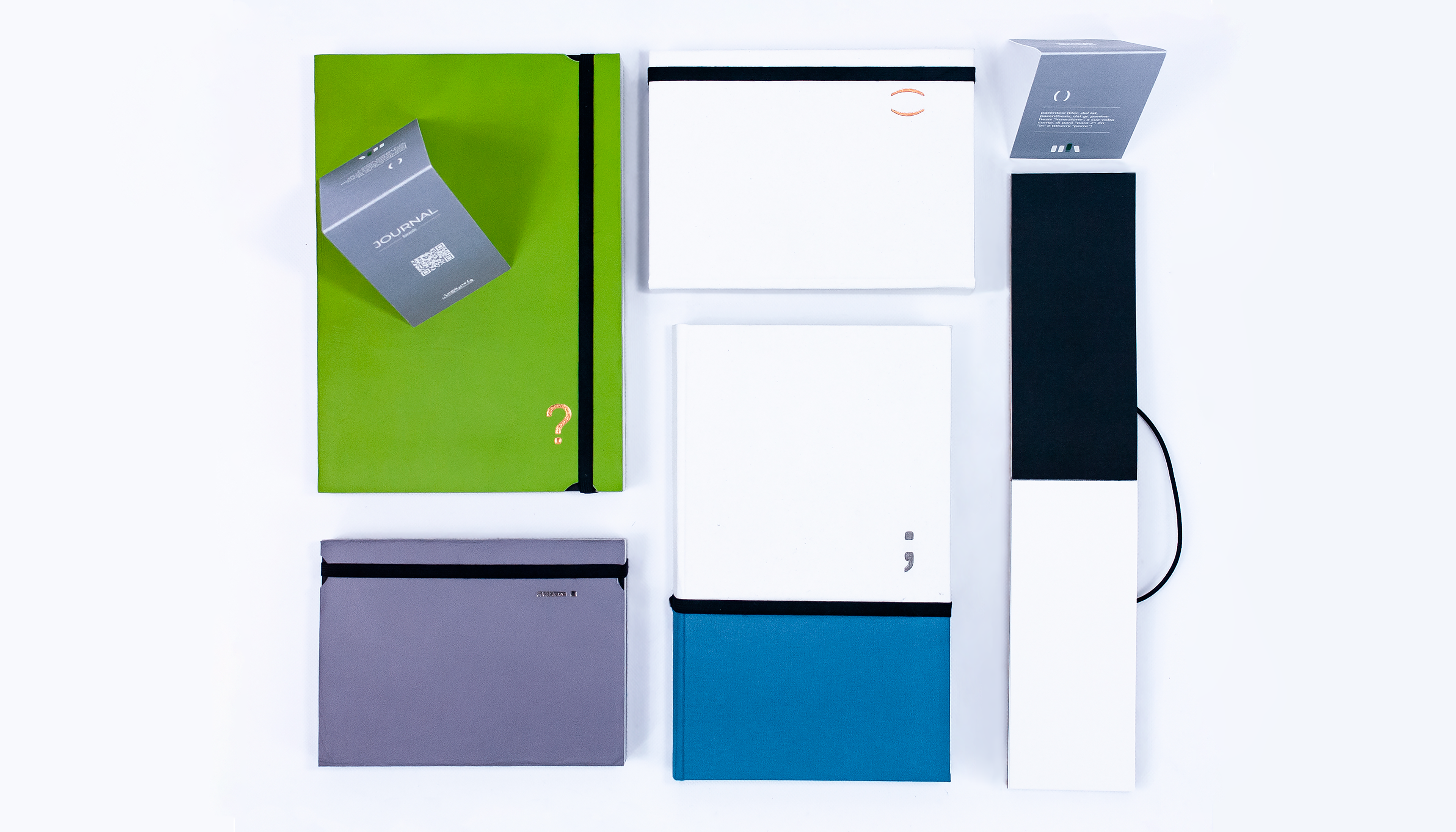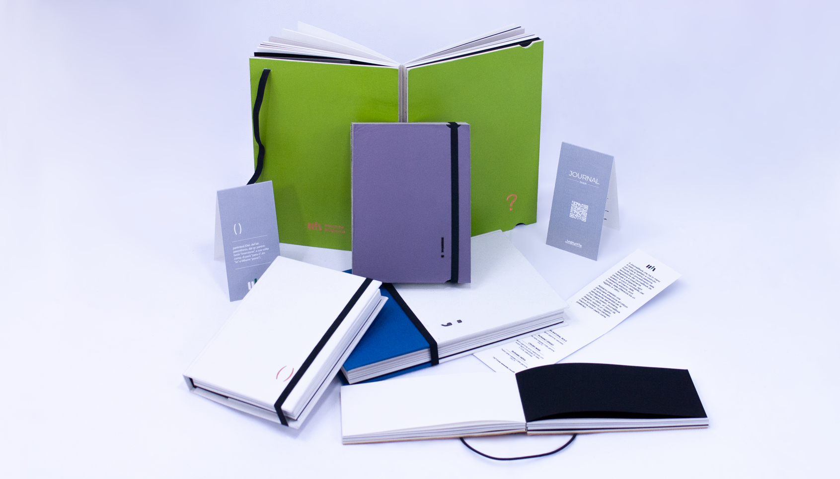 Progettazione design e realizzazione dell'allestimento per la linea "Journalbook" de Lalegatoria: agende handmade rivestite in pelle o carta con rilegatura "gloo".